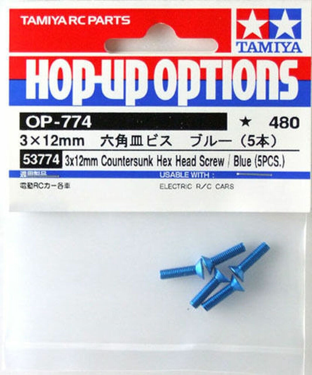 TAMIYA Blå alu Unbaco skrue 3 x 14 mm. undersænket 5 stk.