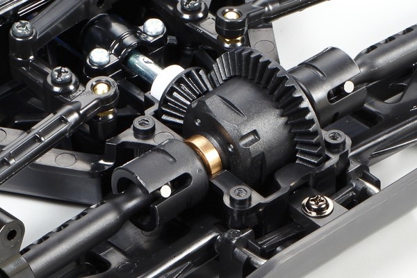 Toppen kan fjernes blot ved at løsne et par skruer, hvilket gør vedligeholdelsen til en leg. Fire forskellige udvekslingsforhold kan anvendes ved brug af tre separat solgte typer tandhjulsgear, så du kan matche egenskaberne for din bilopsætning til forholdene på ethvert givet tidspunkt. Selvfølgelig inkluderer dette offroad-chassis også modtagerkabinet og motordæksel for at beskytte dem mod snavs og snavs, der kastes op fra banen.