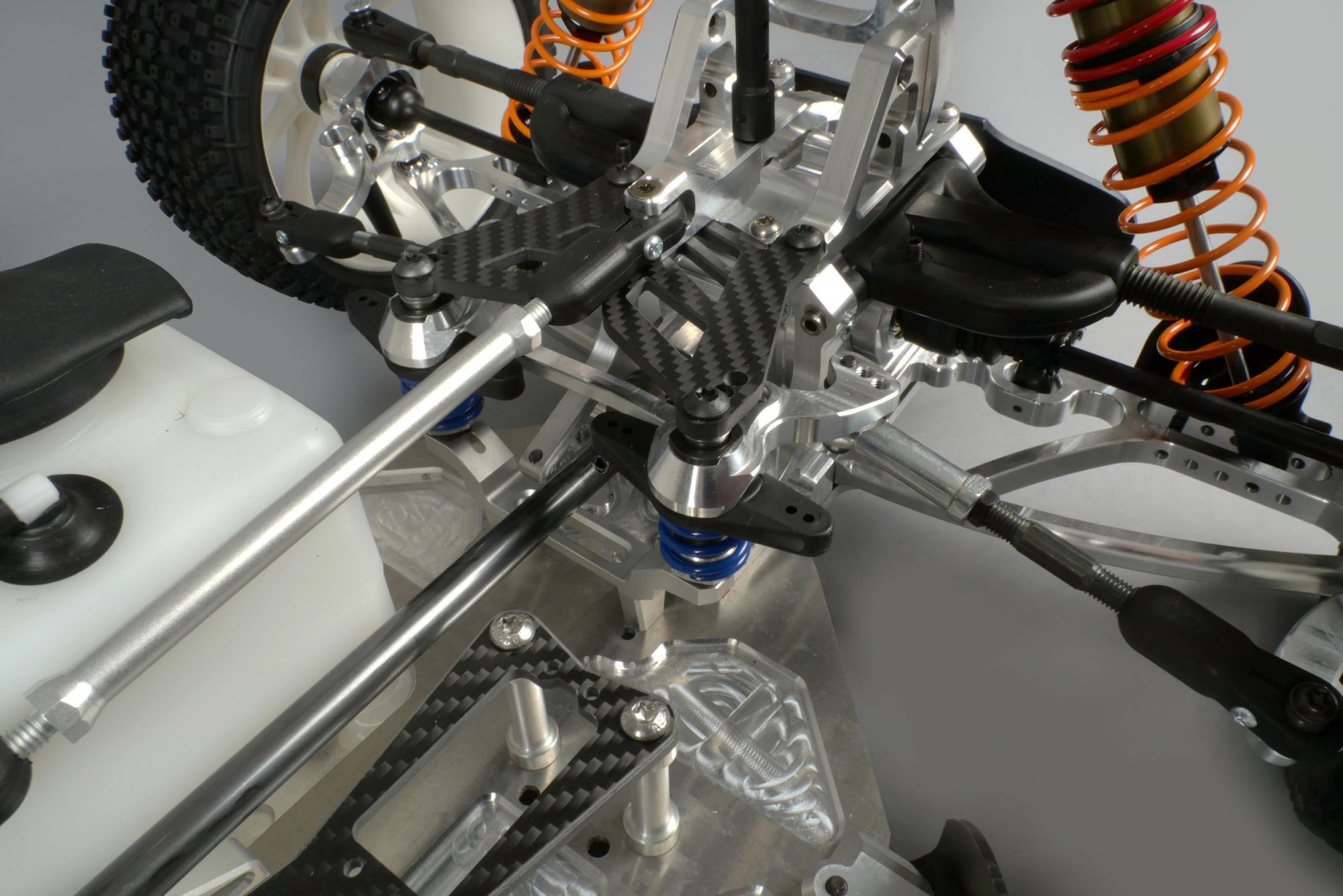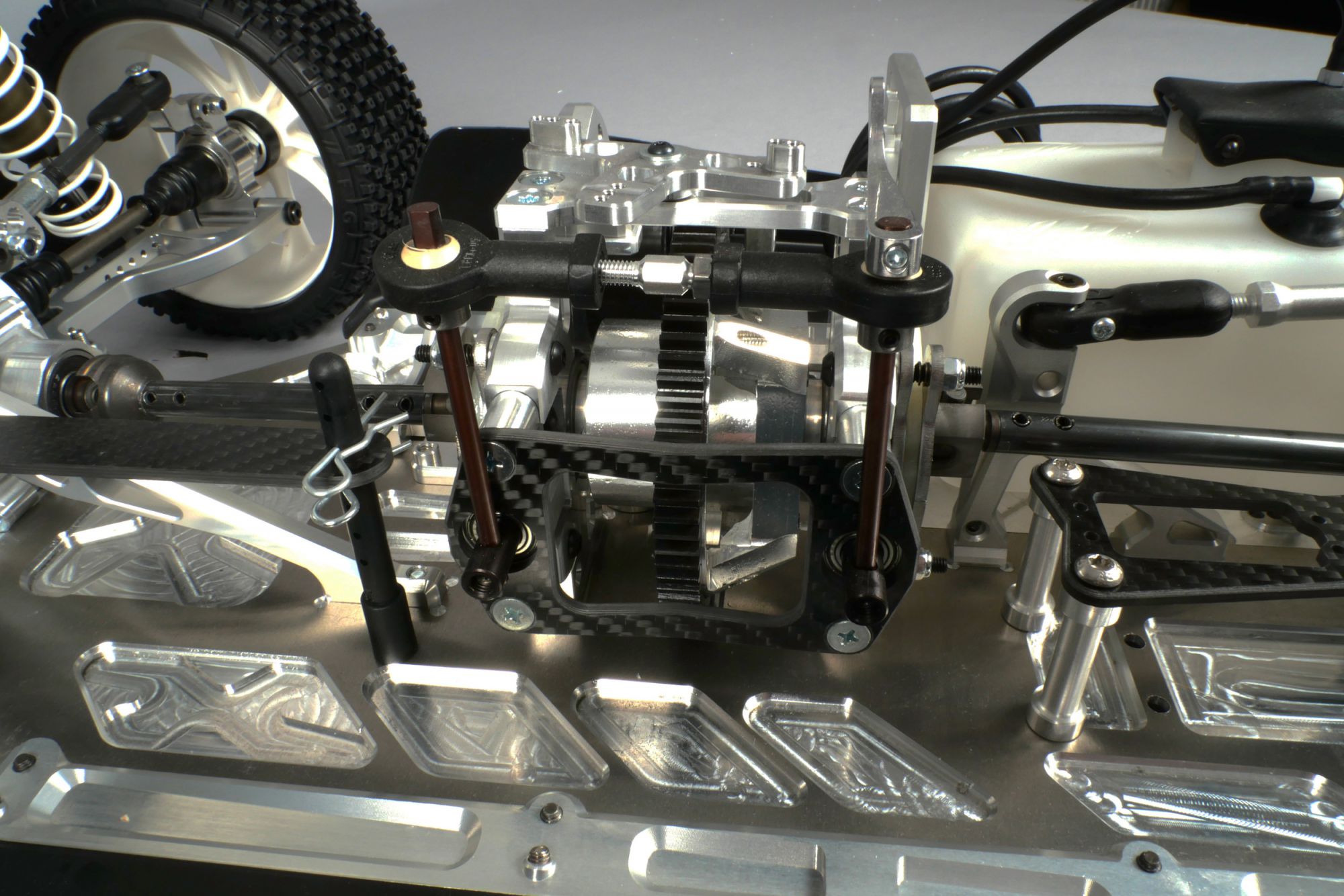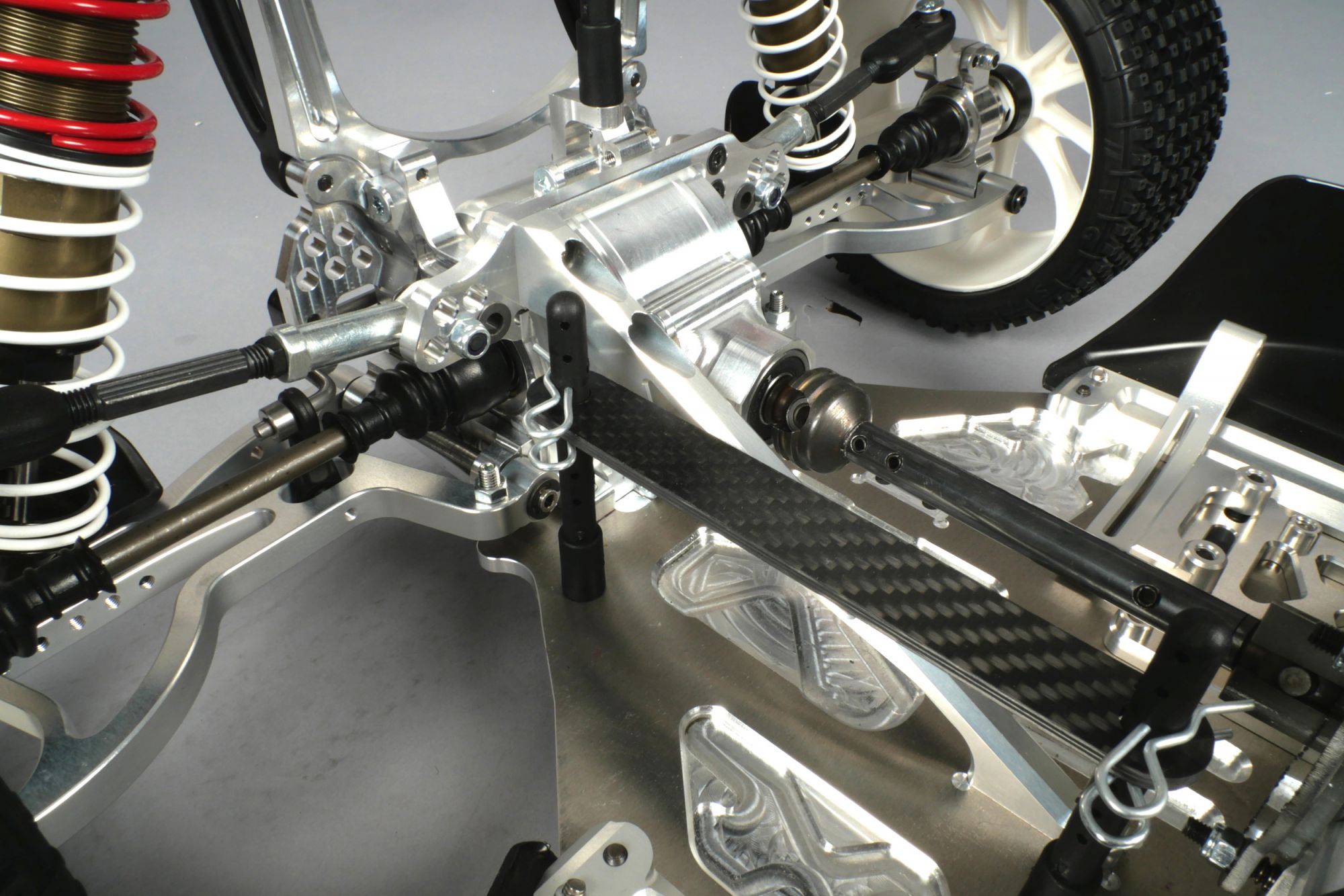 Centralbremsen er integreret i differentialhuset. Modellen har et 5 mm T7075 aluminiumschassis, store støddæmpere, en tunet udstødning og et nyt aerodynamisk karosseri.