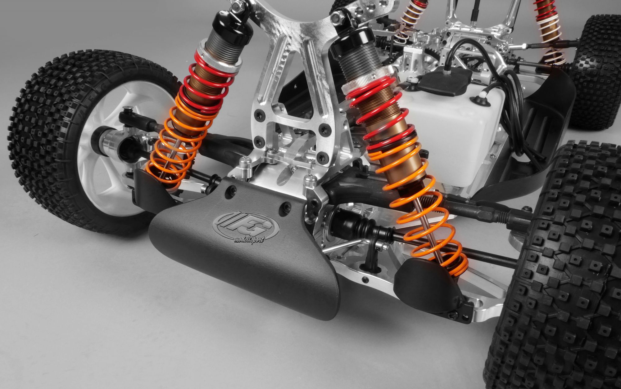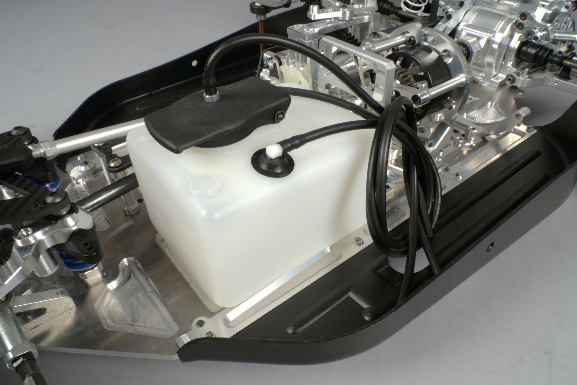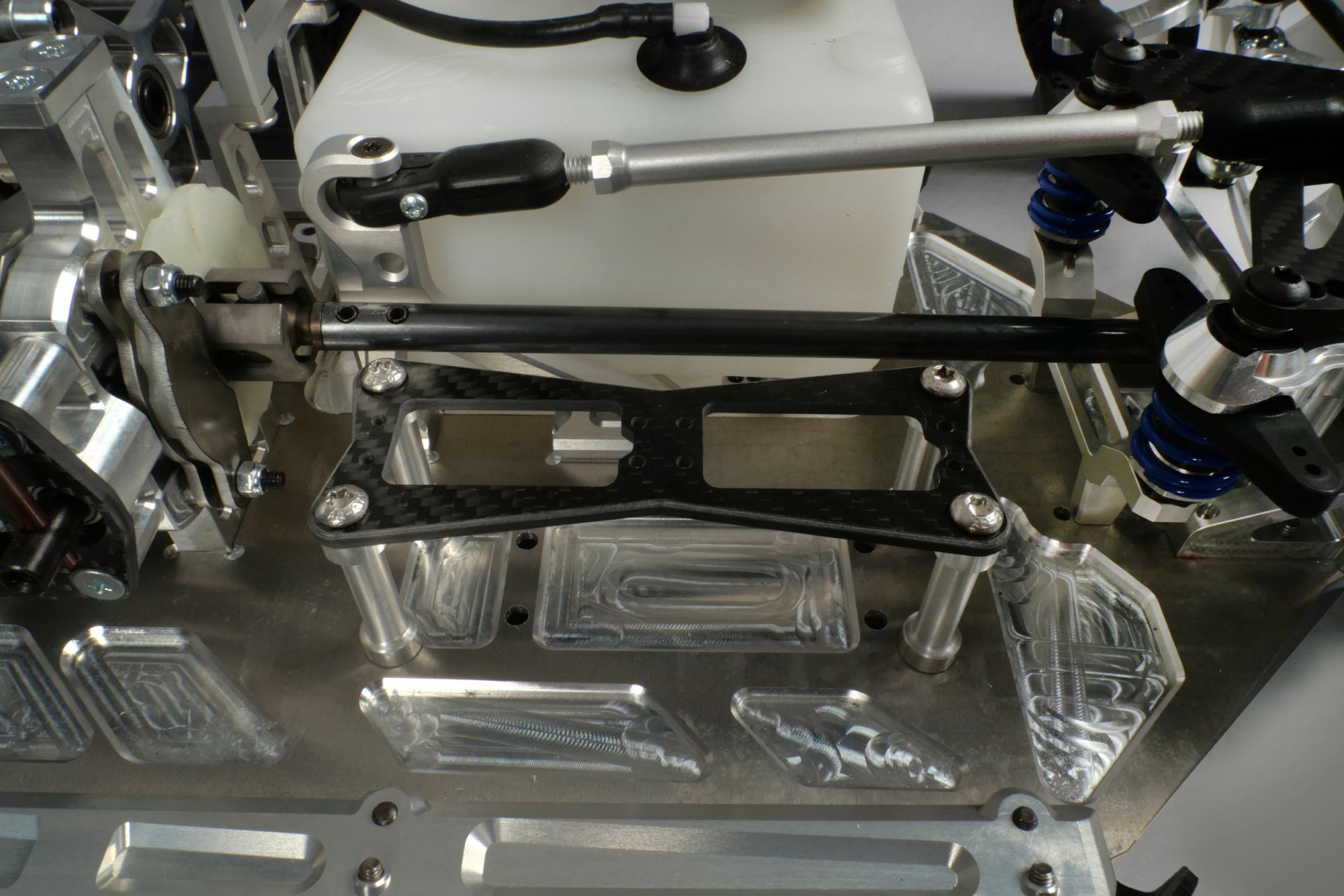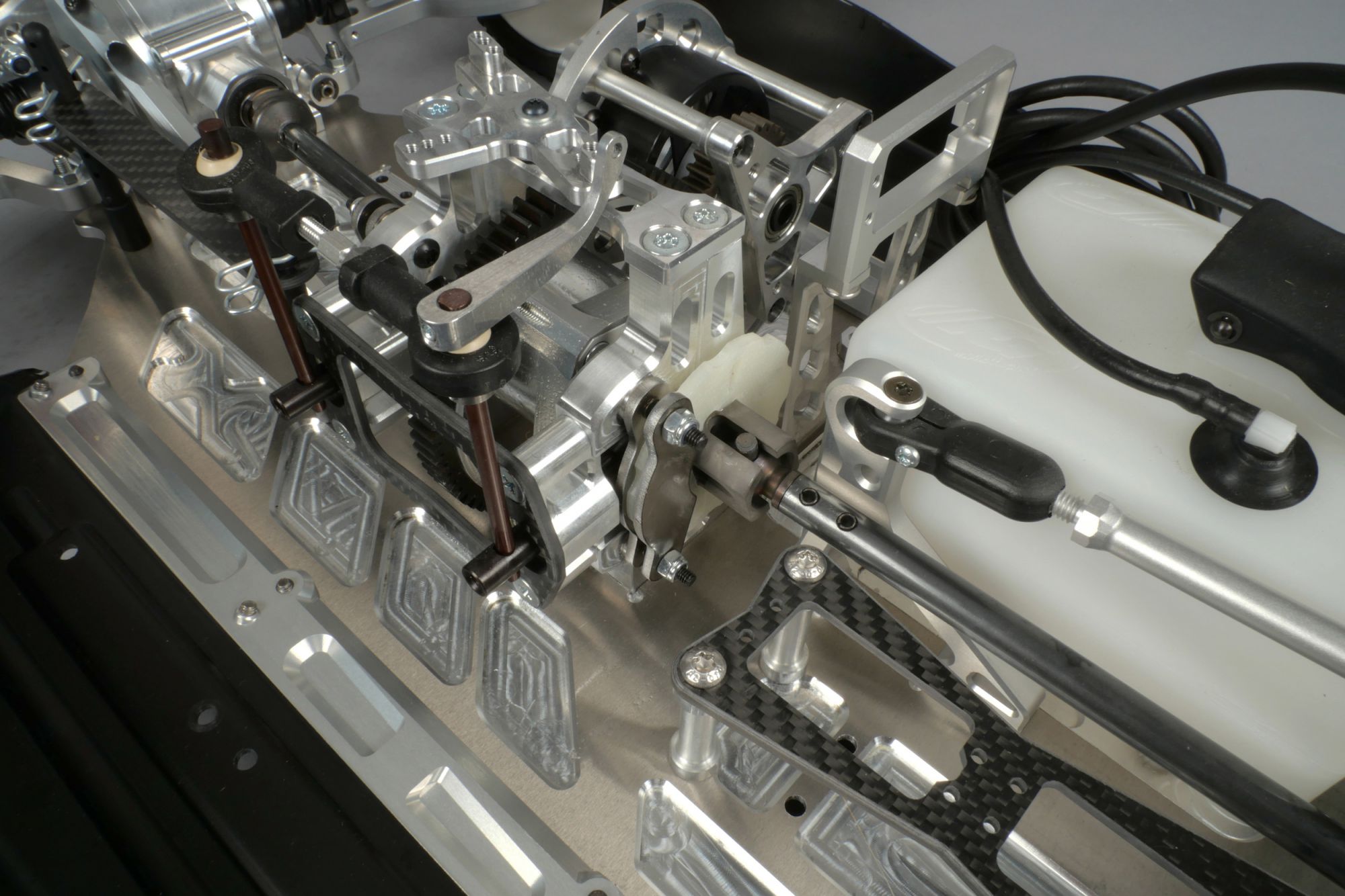 Centralbremsen er integreret i differentialhuset. Modellen har et 5 mm T7075 aluminiumschassis, store støddæmpere, en tunet udstødning og et nyt aerodynamisk karosseri.