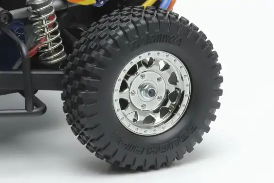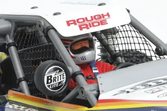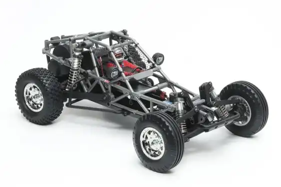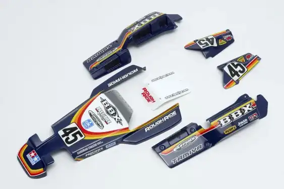 • Det klassisk designede 0,7 mm tykke polycarbonat karosseri er designet af Atsushi Arino og er delt op i tre sektioner for at genskabe den aflange nedre form af den faktiske terrængående bil.