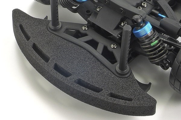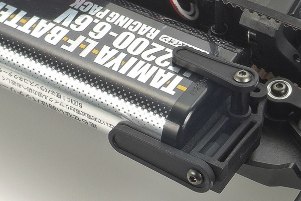 • Har trappet V-formet chassis, som balancerer vægt og stivhed. Batteripakken og servoen er placeret i en lille vinkel (ca. 10 grader) for at reducere overfladekontakt og lette optimal vægtfordeling.