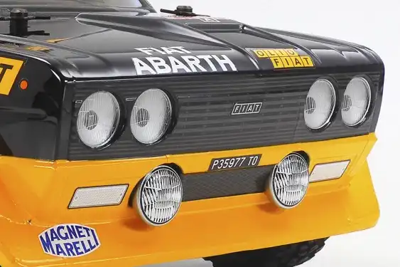 1/10 R/C Fiat 131 Abarth Rally Olio Fiat (MF-01X)Tamiya byder velkommen til Fiat 131 Abarth Rally Olio Fiat som endnu en 1/10 R/C rallybil baseret på MF-01X-chassiset. Fiat 131 Abarth Rally, som udviklet ud fra Fiat 131 Mirafiori, debuterede i 1976 og blev mester i globale rallyløb i 1977 og 1978. Kittet viser Olio Fiats farveskema.Denne Fiat 131 Abarth Rally Olio Fiat er blevet kørt af kendte rallykørere som Markku Alén fra Finland og Ilkka Kivimäki fra Finland som co-driver.Om modellen:
