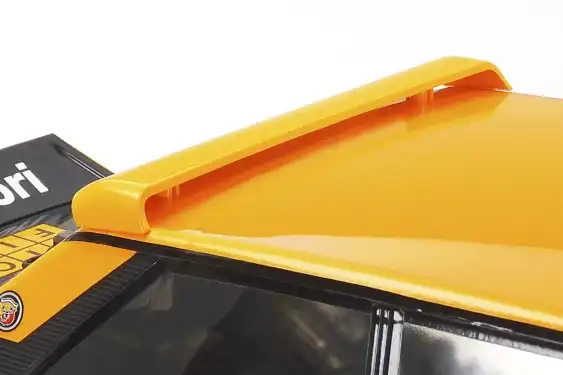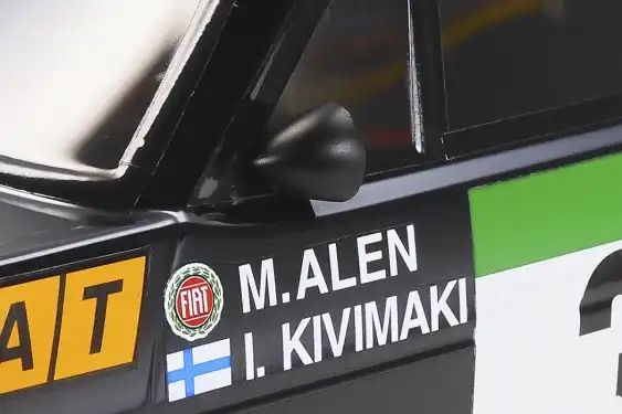 • Formen på Fiat 131 Abarth Rally Olio Fiat er imponerende genskabt i holdbar, let polycarbonat.
