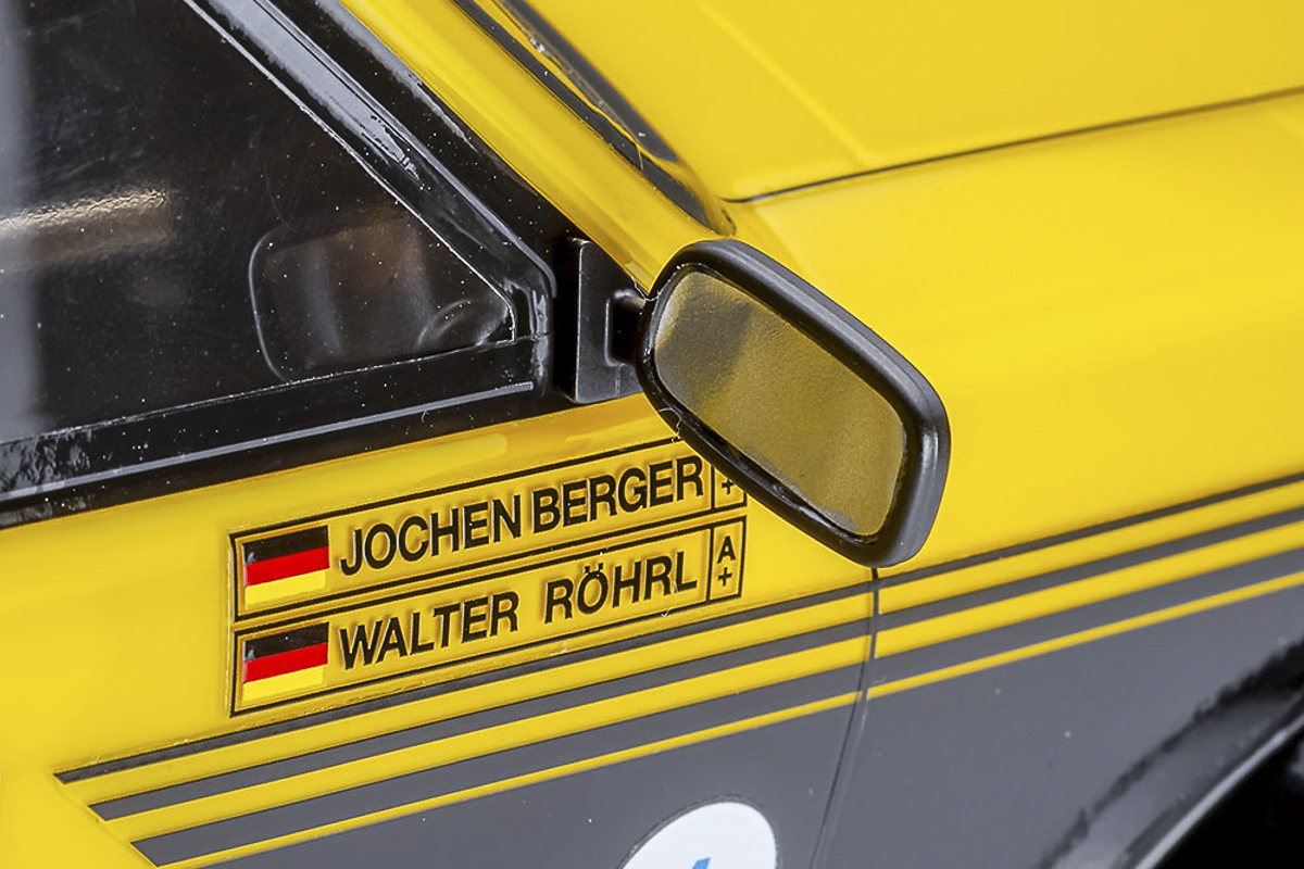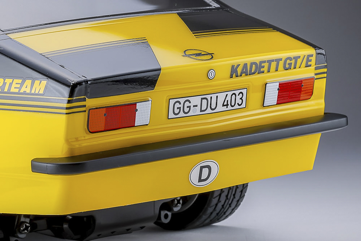 - Formen af Opel Kadett GT / E er autentisk genskabt i letvægts polykarbonat og farveskemaet fra Opel Eurohändler-holdet anvendes.