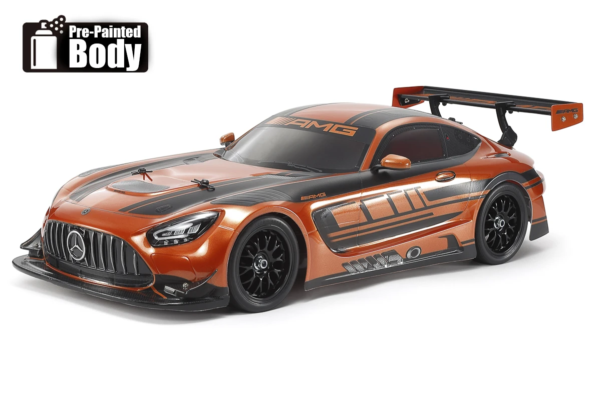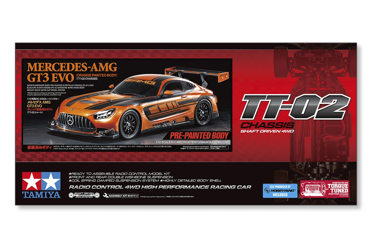 TAMIYA 1/10 R/C Mercedes-AMG GT3 EVO (Orange Painted Body) (TT-02) Samlesæt.