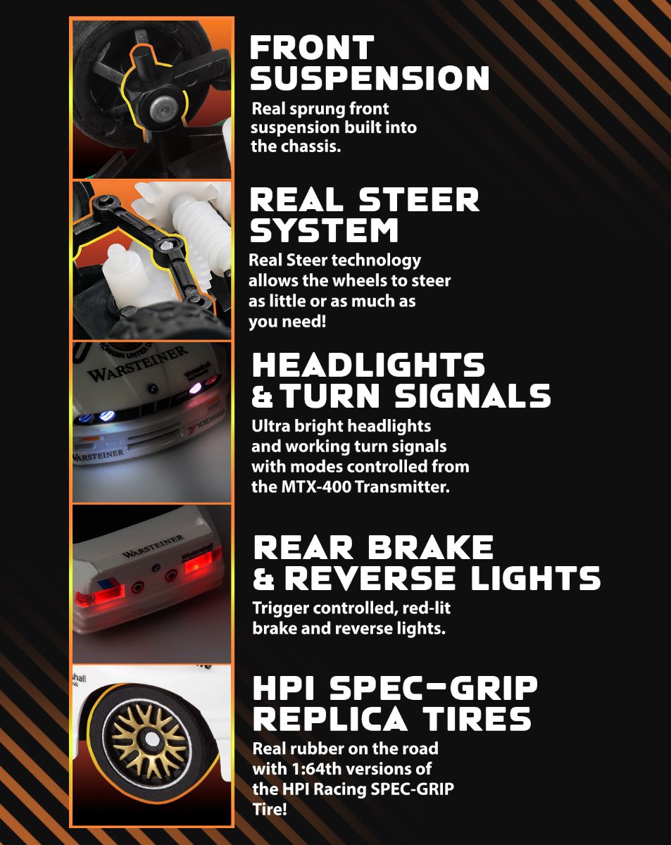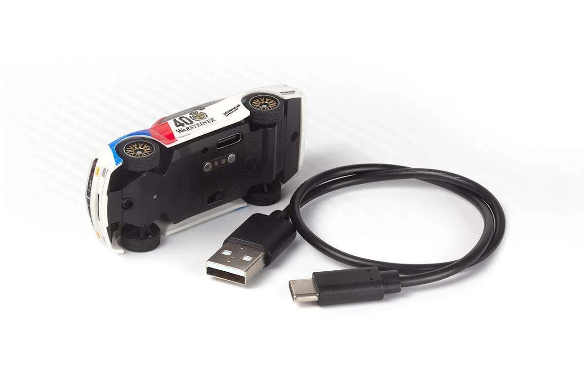 nano-TTR 1987 BMW M3 E30 Warsteiner er en ikonisk klassiker i miniudgave. Den detaljerede 1:64-replika hylder Roberto Ravaglias legendariske mesterskabsbil fra 1987 og leveres færdigsamlet og klar til kørsel. Modellen har fuldt proportional styring, fungerende LED-lys og op til 45 minutters køretid på én opladning. Perfekt til både samlere og dem, der vil have maksimal køreglæde i et ultrakompakt format.