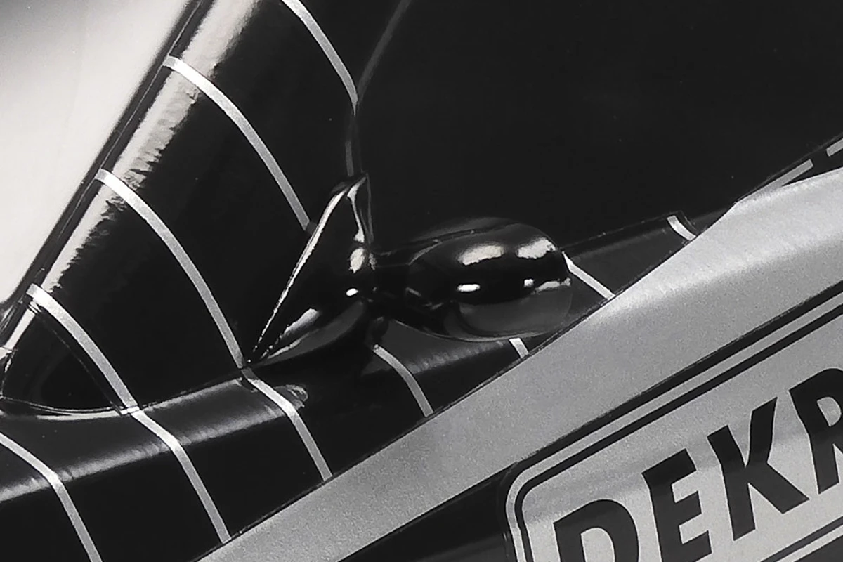 • Separate sorte ABS-plastdele gengiver realistisk sidespejle, hækvinge, frontgrill og emblemer.