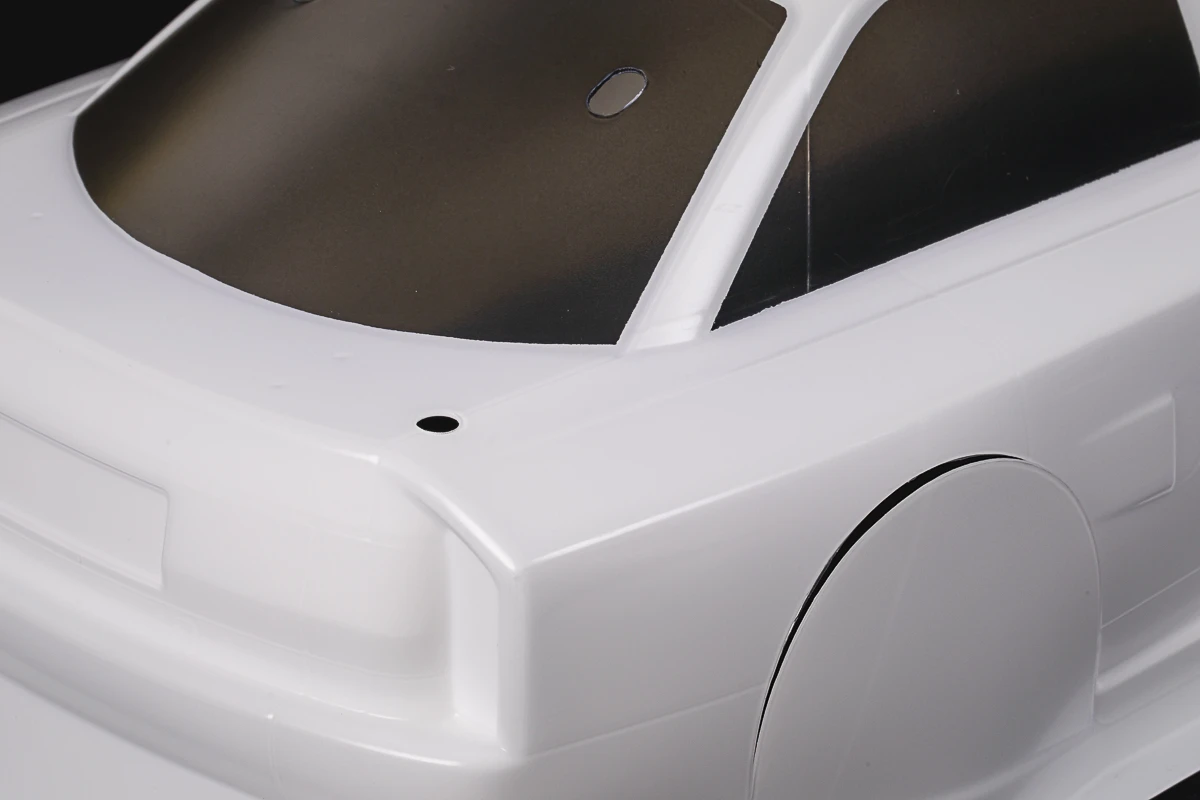 Den begrænsede udgave af sættet leveres med et polykarbonatkarosseri, der er for-lakeret i hvid (PS-1) med røgfarvede (PS-31) vinduer. Hjulbuerne er allerede skåret ud, og monteringshullerne til karosseriet er forberedt – perfekt både for begyndere og erfarne R/C-entusiaster.