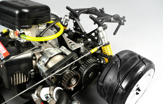 Yderligere udstyr omfatter: differentiale, letløbende FG-kugletræk, olieforkomprimerede støddæmpere med volumenkompensation og udvendig justeringsring til fjederspænding. Alle roterende drivdele såsom aksler, trækaksler, osv. er kuglelejrede. Karrosseridelene er indfarvede eller lakerede og dekorerede (RTR) eller fremstillet af helt klart polycarbonat. Dækkene er limet fast på fælgene.